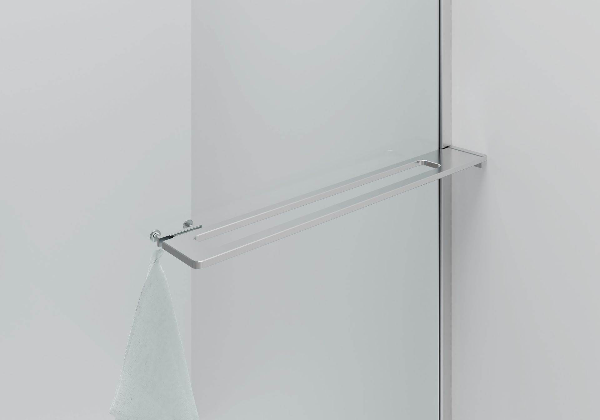 De praktische handdoekhouder – voorzien van een geïntegreerde tablet en twee handige haakjes – biedt extra gemak en opbergruimte. Je kunt deze eenvoudig aan de binnen- of buitenkant van de douchewand bevestigen, afhankelijk van wat jij het meest praktisch vindt.