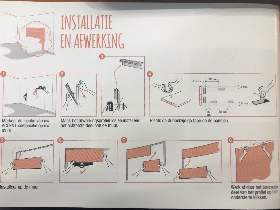 De plaatsing is door middel van lijmsysteem met behulp van lijmen die in de verpakking worden geleverd.