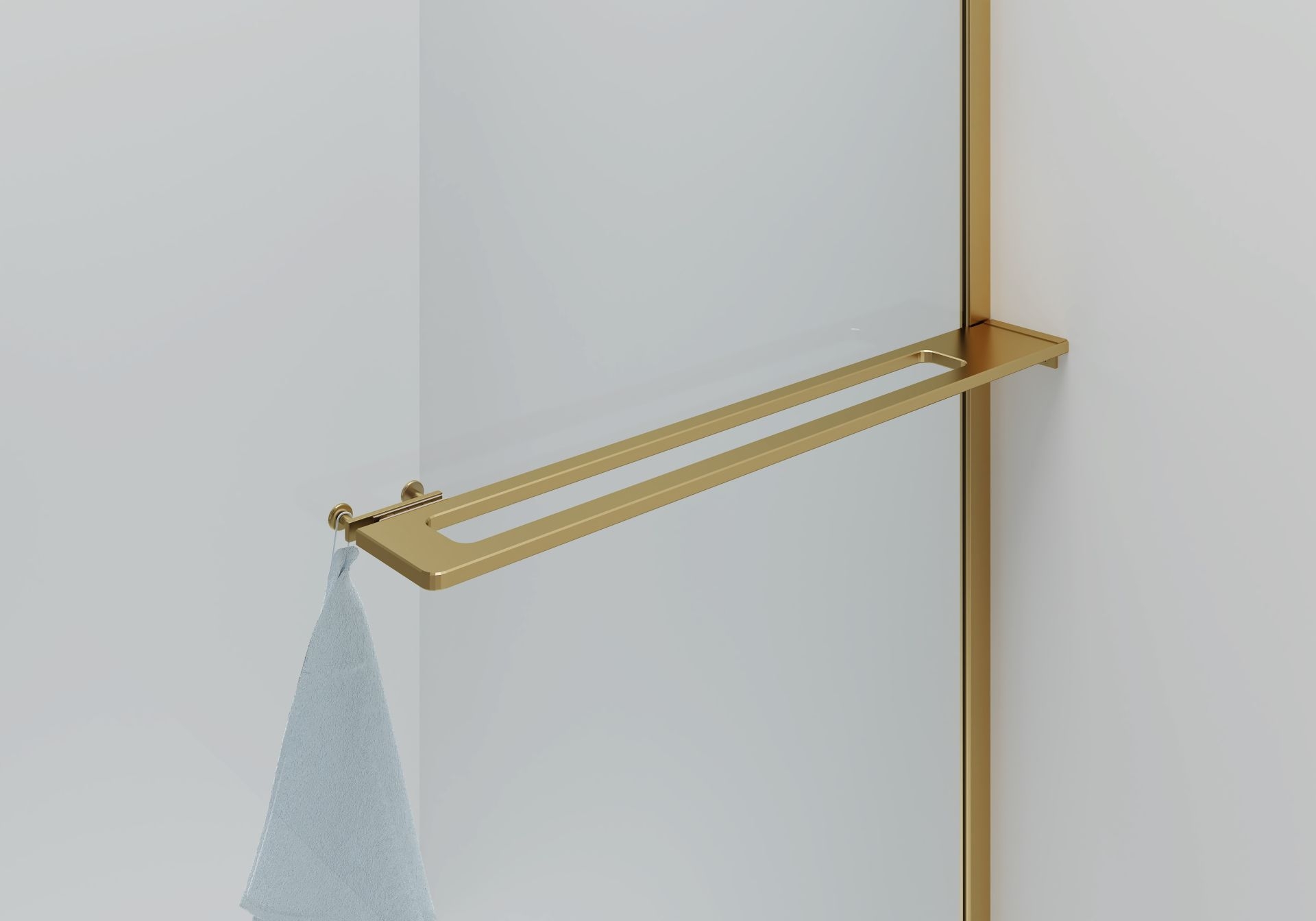 Inloopdouche Douchewand Curvy Goud met Handdoekhouder 100cm 8mm veiligheidsglas met anti-kalk