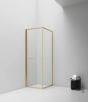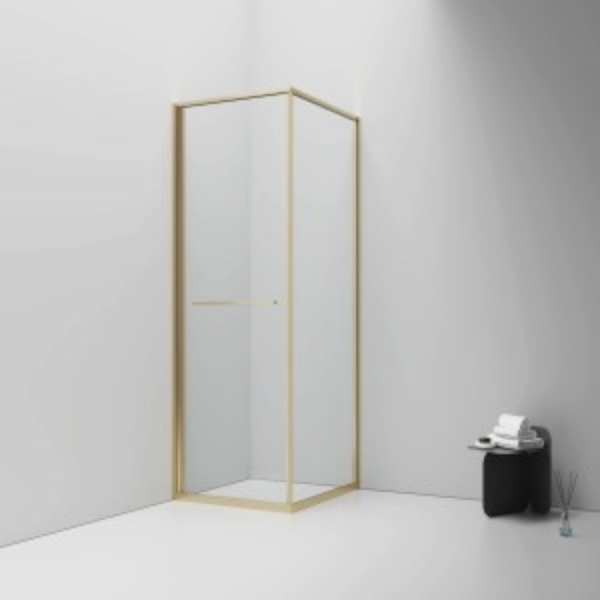 Optimaliseer elke centimeter van je badkamer met deze moderne, ruimtebesparende Inslide douchecabine met geborsteld goud profiel en helder veiligheidsglas.