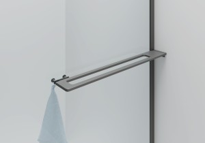 De praktische handdoekhouder – voorzien van een geïntegreerde tablet en twee handige haakjes – biedt extra gemak en opbergruimte. Je kunt deze eenvoudig aan de binnen- of buitenkant van de douchewand bevestigen, afhankelijk van wat jij het meest praktisch vindt.