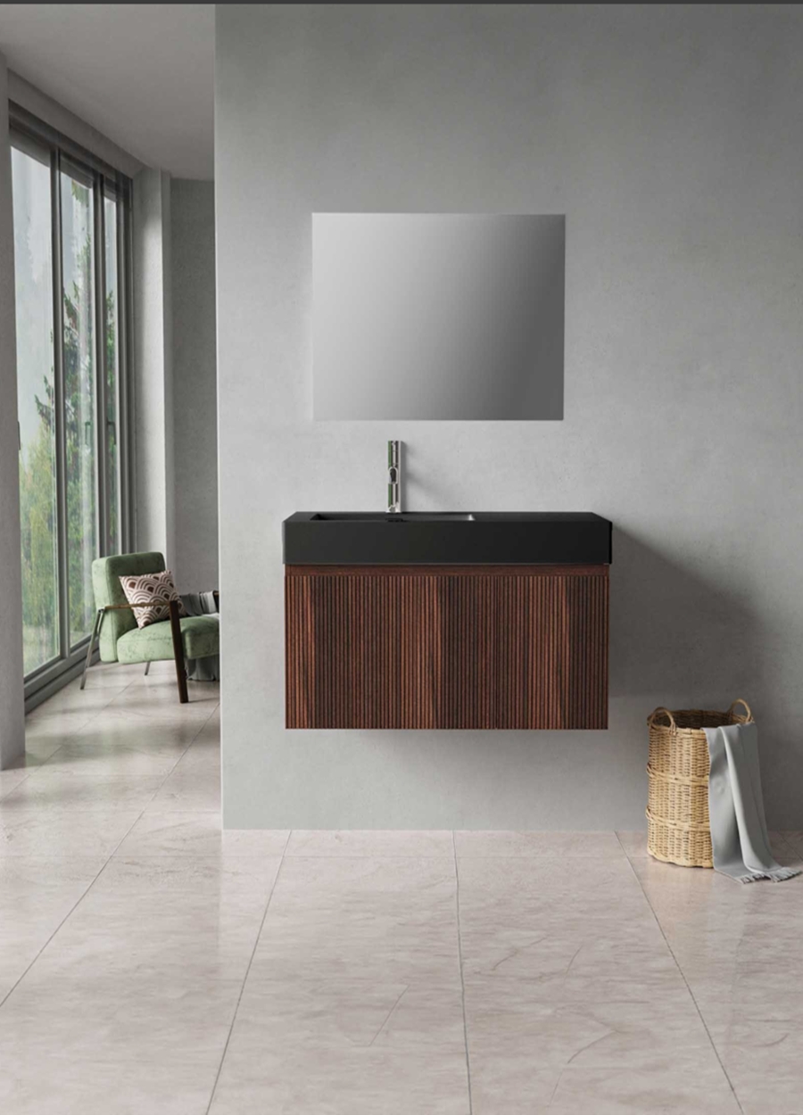 Badmeubel Ela Walnoot 60 of 80 cm Ribbelfront