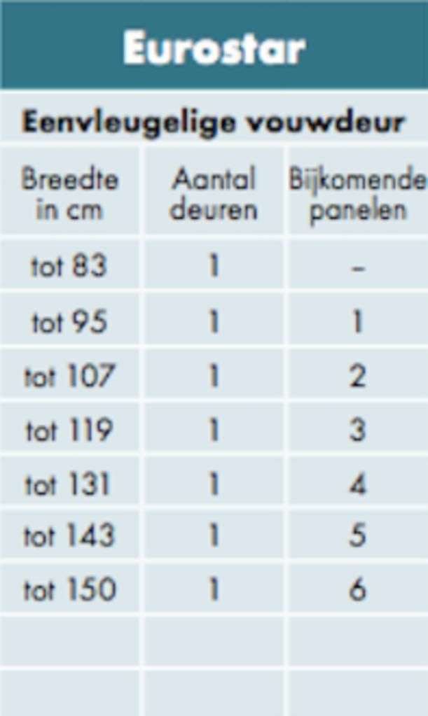 Extra lamellen Eurostar vouwdeur.
