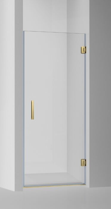 Geef uw badkamer een strakke, moderne uitstraling met de Nano Clean douchedeur 60×200 cm in goud, volledig profielloos uitgevoerd. Deze stijlvolle nisdeur is voorzien van een scharnierdeur die zowel naar binnen als naar buiten opent. Doordat de deur geen profiel heeft, krijgt uw doucheruimte een minimalistische en luxe afwerking. Houd er wel rekening mee dat een profielloze deur niet verstelbaar is: de nisbreedte moet exact 60 cm zijn of breder. De meegeleverde bolstrip wordt aan de handgreepkant geplaatst en bepaalt de totale breedtemaat. Laat u deze weg, dan valt de maat enkele millimeters kleiner uit.